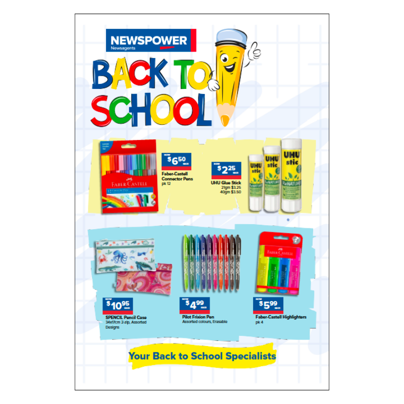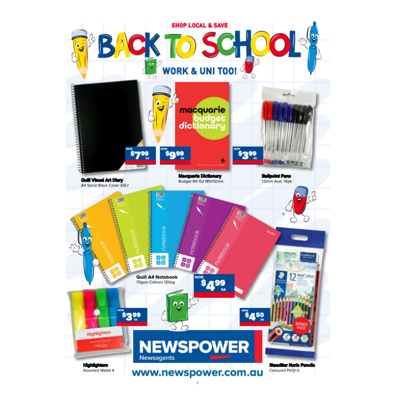 The Newspwoer Back to School 2026 Catalogue is your go to destination for affordable school supplies, stationery essentials and classroom must haves for the year ahead. Packed with great value on exercise books, pens, pencils, art supplies, calculators, folders and more, this catalogue helps families, students and teachers prepare for school, work and university while supporting their local Newspower Newsagent. Shop smart, save money and get everything you need in one convenient place with trusted brands and everyday low prices.