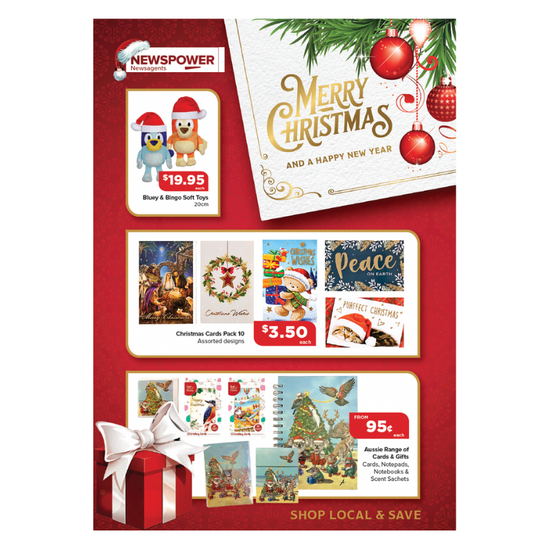 Discover the Newspower Christmas 2025 Catalogue, packed with festive cards, gifts, decorations, toys and wrapping essentials. Find everything you need to make the season bright, from Aussie-themed cards and bon bons to soft toys and scented sachets. Great value and cheerful designs available now at your local Newspower store.